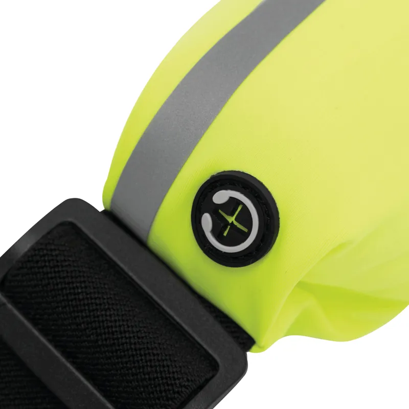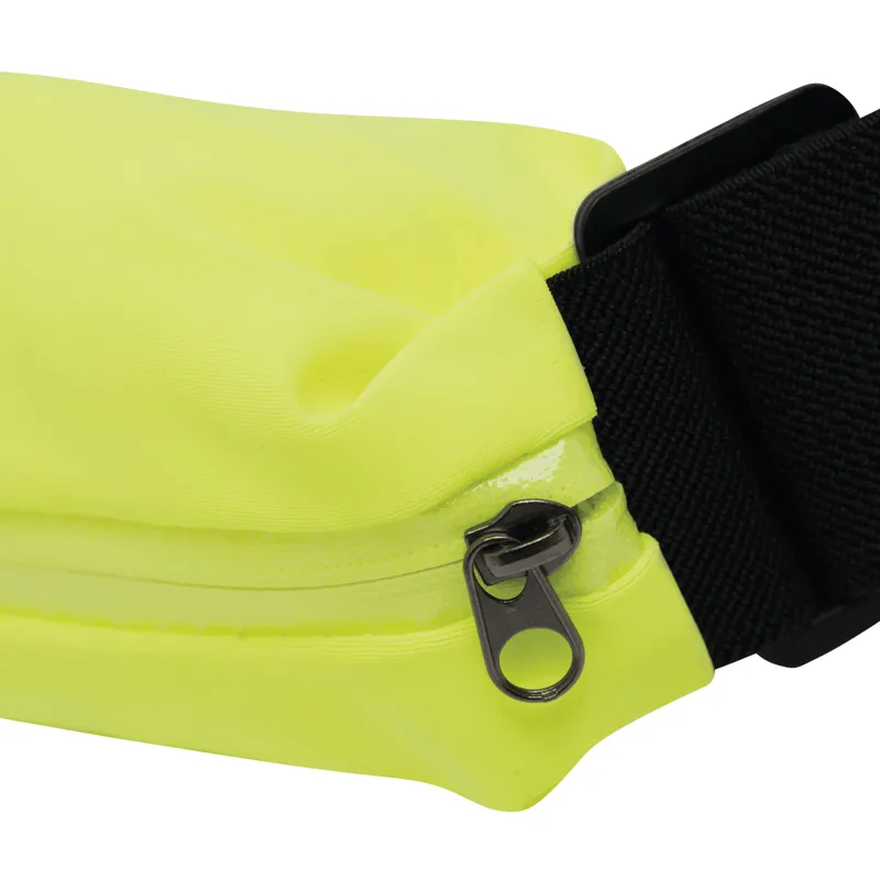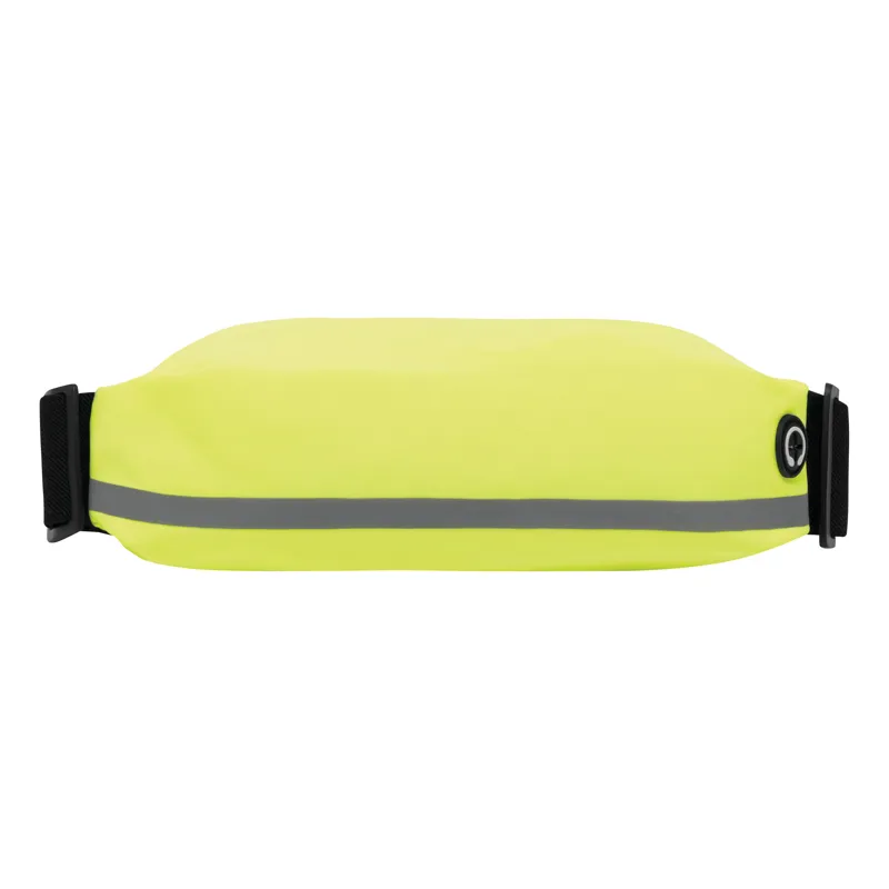 SEE ME övtáska cseppálló: a külső részen nyílással a fülhallgató vezetékének, valamint fényvisszaverő csík a kiváló láthatóság és nagyobb biztonság érdekében, cipzárral és rugalmas pánttal és karabinerrel – ideális kocogáshoz, sétához vagy túrázáshoz