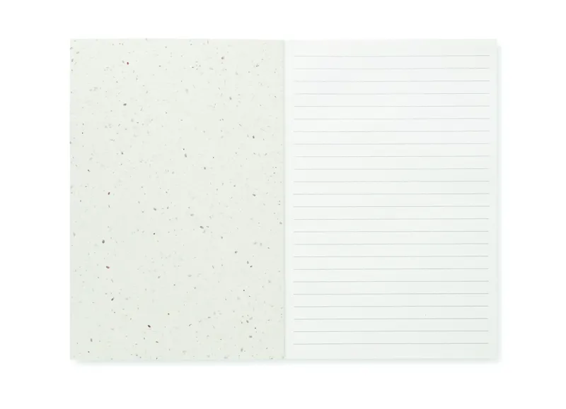 A5 magpapír borítójú jegyzetfüzet. 200 újrahasznosított vonalas oldal (100 lap).