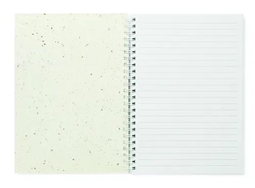 A5 magpapír borítójú jegyzetfüzet. Spirálozott. 200 újrahasznosított vonalas oldal (100 lap).