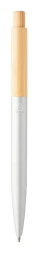 Bambuszból és újrahasznosított alumíniumból készült golyóstoll gumírozott felülettel és fegyverfém klipsszel. Kék tollbetéttel.