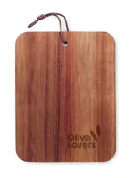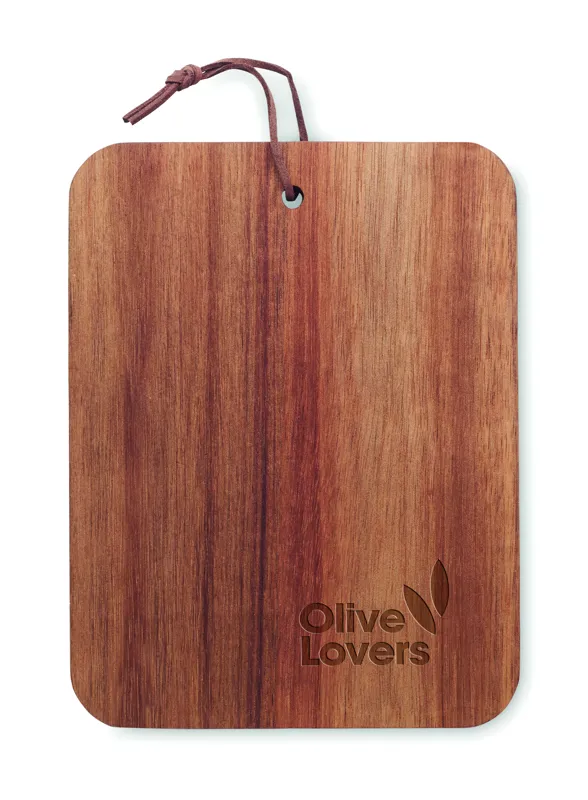Akáciafa vágódeszka PU zsinórral. A fa természetes anyag, termékenként szín- és méretbeli eltérések jelentkezhetnek, ami befolyásolhatja a dekoráció végső eredményét.