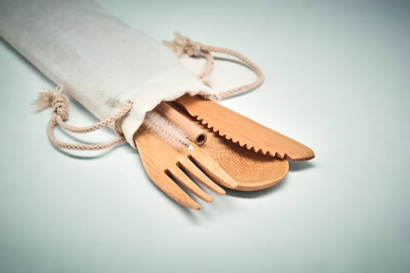 SETSTRAW Bambusz evőeszközök+szívószál bézs