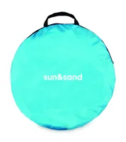 Kétszemélyes strandsátor 190T poliészterből. 6 acél kampóval és hozzáillő hordtáskával. Könnyű, egyszerűen felállítható, árnyékot és kényelmet biztosít a szabadban.
