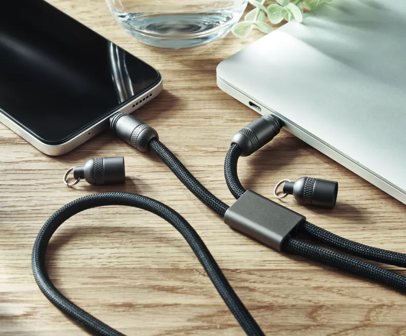 60 W-os, C-típusról C-típusúra töltő- és adatátviteli kábel RPET-ből, zsinóros telefontartóval.