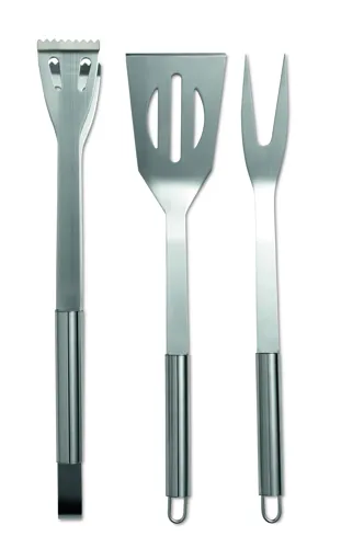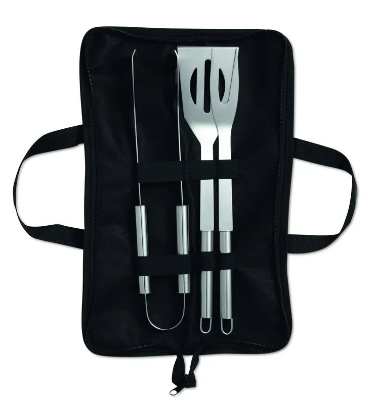 3 részes rozsdamentes acél grillező eszköz készlet. 600D poliészter cipzáras tokban.