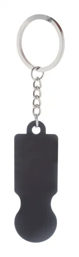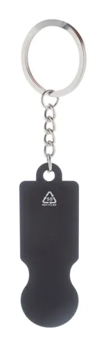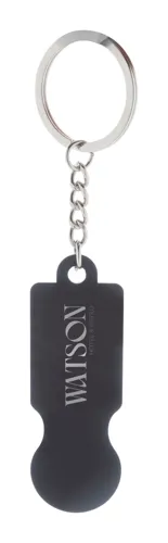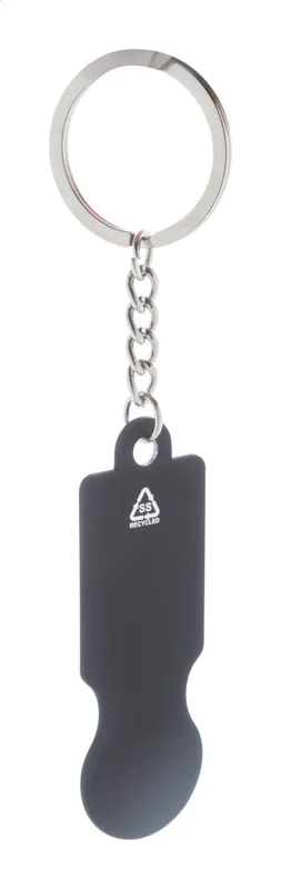 Újrahasznosított rozsdamentes acélból készült kulcstartó gumírozott felülettel és bevásárlókocsi érmével. Speciális bevonattal tükörgravírozáshoz.