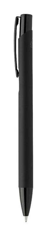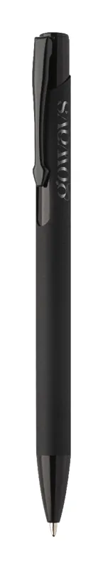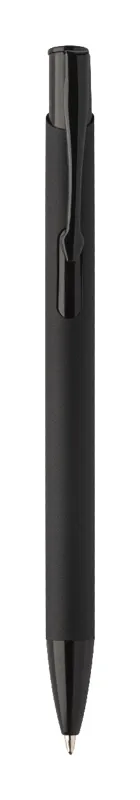 Újrahasznosított alumínium golyóstoll gumírozott testtel és színes, fényes, metálfényű részekkel. Speciális bevonattal a fém alkatrészekhez illő tükörgravírozáshoz. Kék tollbetéttel.