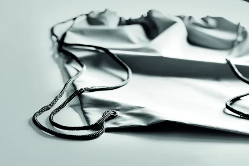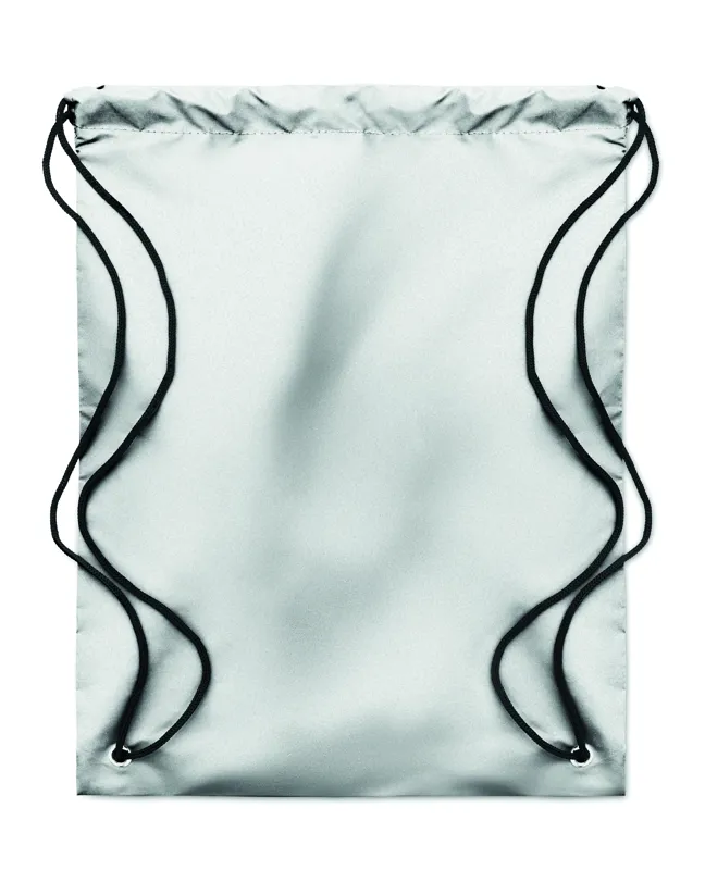 Magas fényvisszaverő képességű poliészterből készült zsinóros tornazsák.