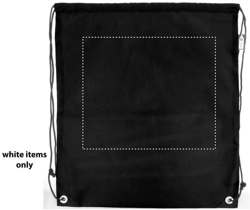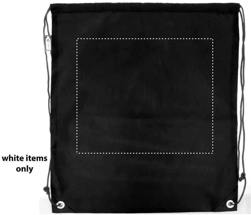 Zsinóros tornazsák 190T RPET anyagból, polipropilén zsinórral. Újrahasznosított műanyag palackokból készült környezetbarát anyag.