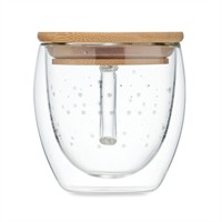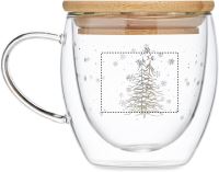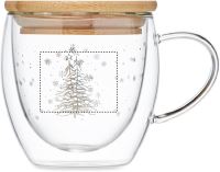 Duplafalú boroszilikát bögre karácsonyfa dizájnnal, bambuszfedéllel. Űrtartalom: 220 ml. A bambusz természetes anyag, színében, mintázatában és méretében esetenként eltérő lehet.