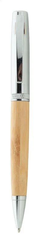 Elegáns, fém tekerős golyóstoll bambusz felülettel és fényes króm részletekkel. Bambusz tokban, kék tollbetéttel szállítjuk.