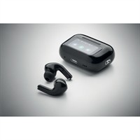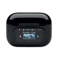 TWS (True Wireless Stereo) 5.0 vezeték nélküli sztereó fülhallgató újrahasznosított ABS-ből, ANC/ENC zajszűréssel, mikrofonnal, 30 mAh beépített újratölthető akkumulátorral és 230 mAh töltődobozzal. Érintőképernyős kijelző.