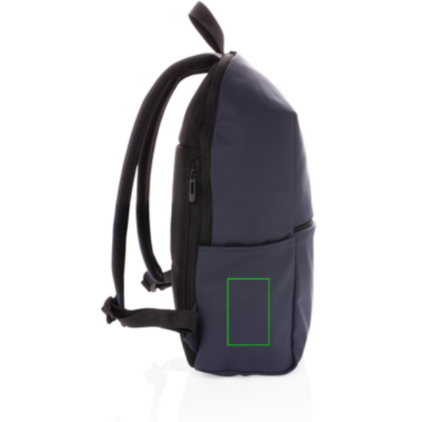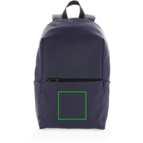 Minimalista tervezésű, modern hátizsák sima PU anyagból, 15.6"-es laptoptartó rekesszel, tágas főrekesszel valamint 2 belső zsebbel és 2 tolltartó hurokkal. Hálós, párnázott hátrész, állítható pántok. Külseje PU, belseje 210D poliészter. PVC-mentes.