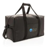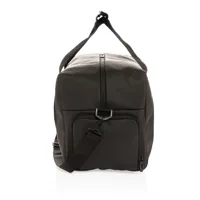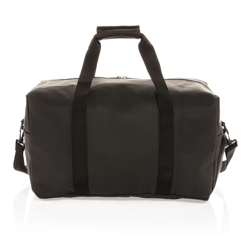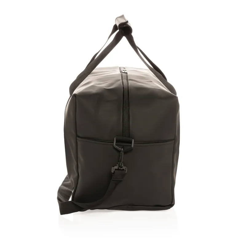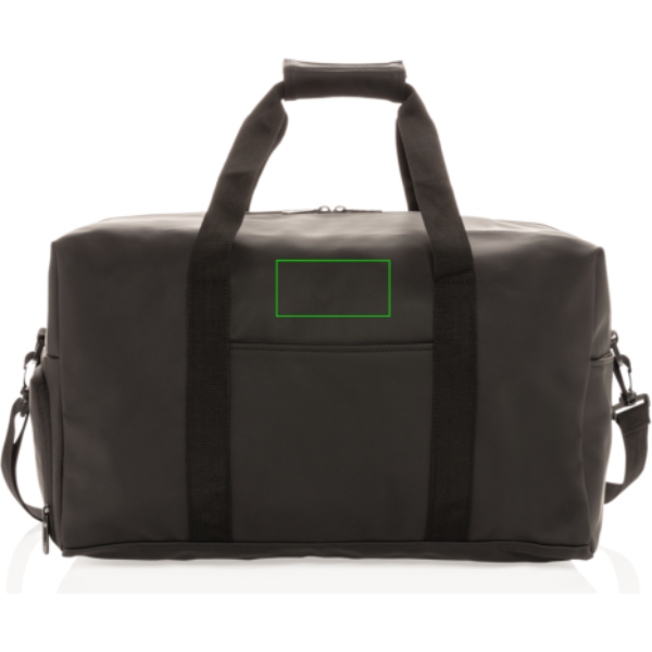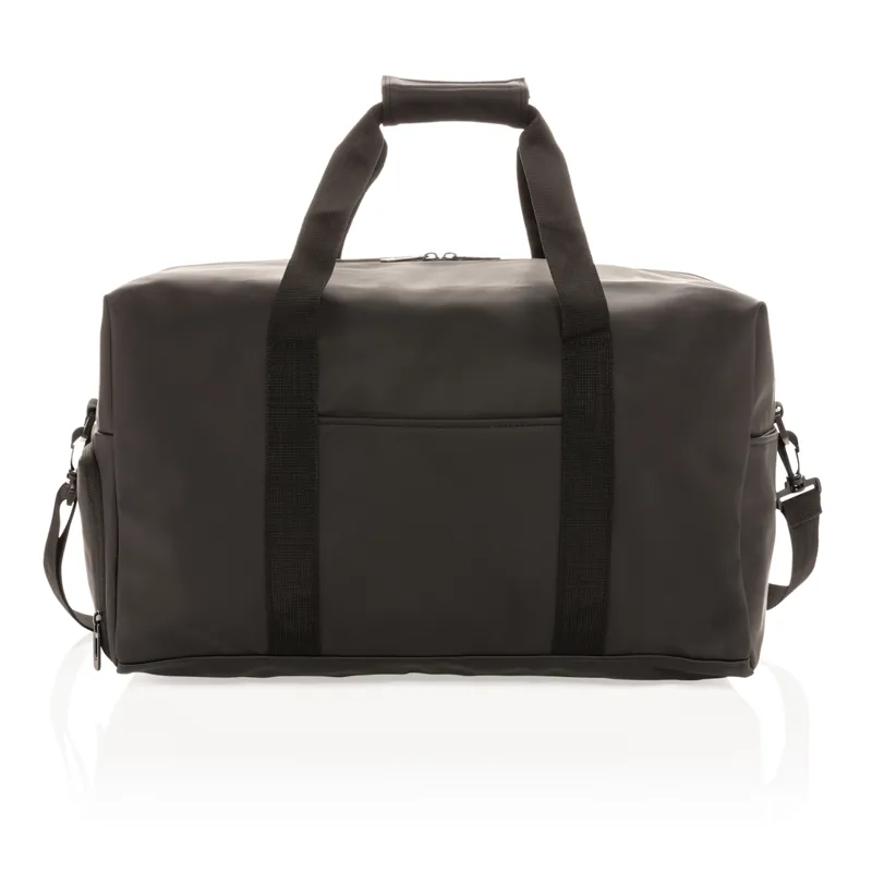 Hétvégi táska sima PU anyagból a mindennapokhoz. Minimalista kialakítás elülső, külső zsebbel, belső zsebbel valamint egy tágas főrekesszel. Oldalán rekesszel cipő tárolásához. A táska kézben, vállon vagy akár oldalasan is hordható az állítható hordpánt segítségével. Külseje PU, belseje 210D poliészter. PVC-mentes.