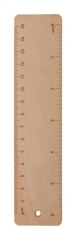 15 cm hosszú, fa vonalzó (cm és inch skálával).