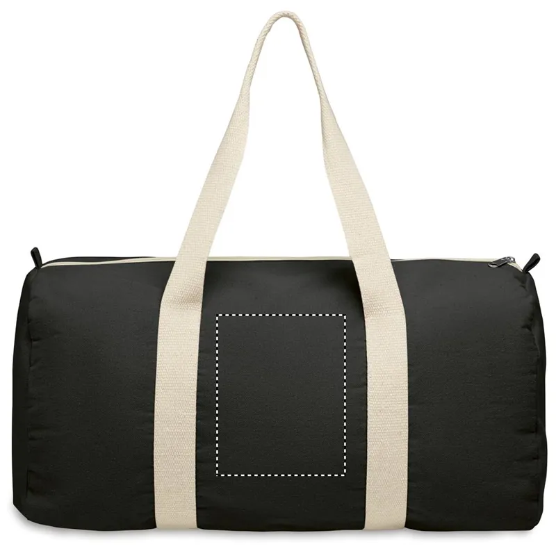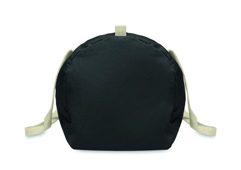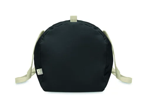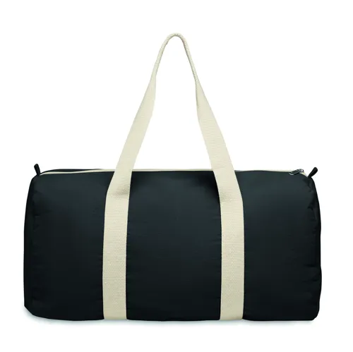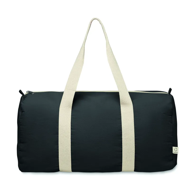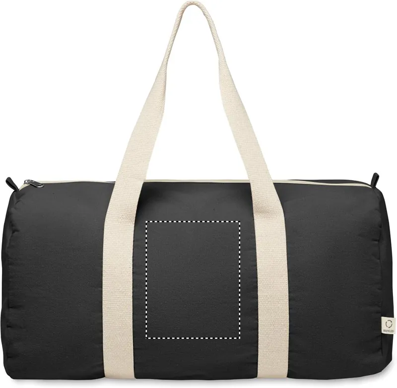Sport- vagy utazótáska cipzáras oldalsó rekesszel és cipzáras belső zsebbel, 320 g/m² vastag újrahasznosított pamutból (80%) és újrahasznosított poliészterből (20%), hosszú fülekkel.