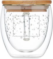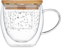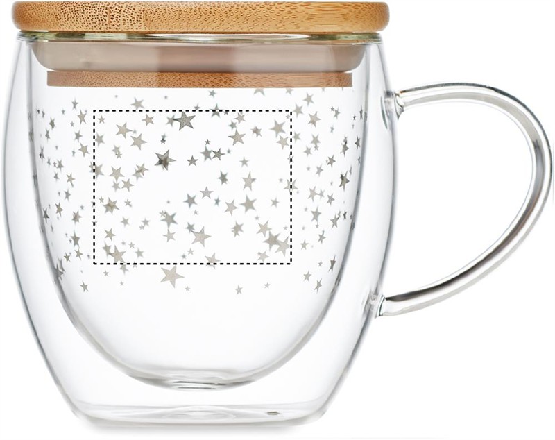 Duplafalú boroszilikát bögre csillagos mintával, bambuszfedéllel. Űrtartalom: 220 ml. A bambusz természetes anyag, színében, mintázatában és méretében esetenként eltérő lehet.