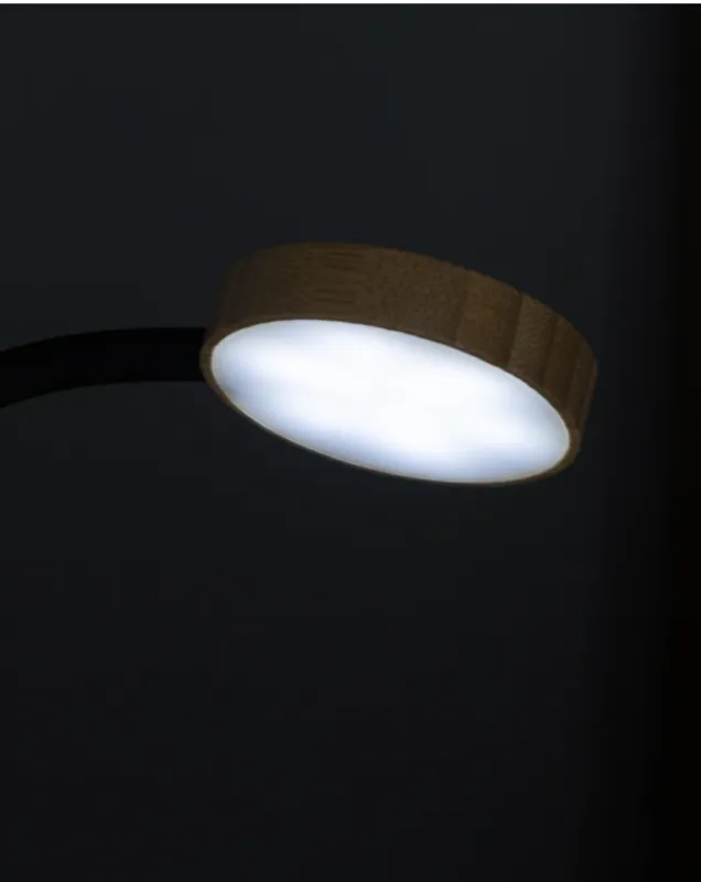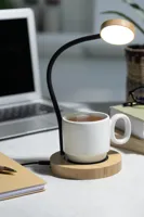 Bambuszból készült multifunkcionális asztali lámpa beépített bögremelegítővel. Meleg, természetes és hideg fény módokkal. USB töltőkábellel.