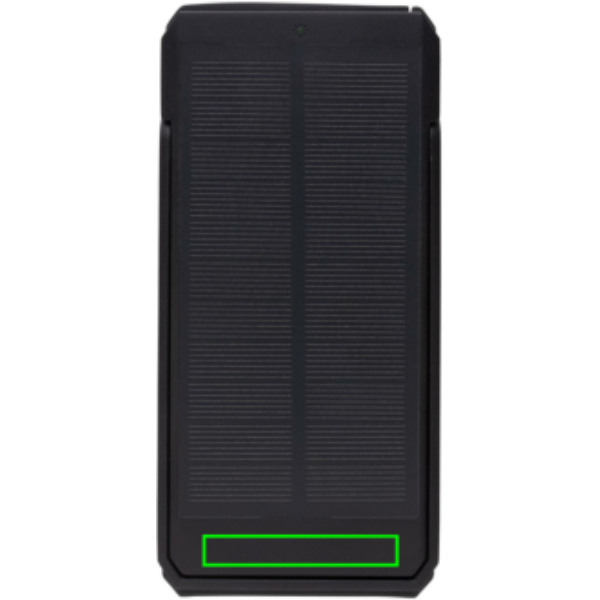 10 000 mAh-s napelemes powerbank RCS újrahasznosított ABS-ből. Teljes újrahasznosított anyag tartalom: 18% a termék összsúlya alapján. Az RCS-tanúsítvány biztosítja az újrahasznosított anyagok ellátási láncát. A powerbank 19%-os konverziós aránnyal használ kiváló minőségű monokristályos napelemeket. A töltési arány a feltételektől függ. Integrált állvány funkcióval a napelemek optimális szögben történő használatához. Hosszú élettartamú, A-fokozatú 10 000 mAh-s lítium akkumulátorral. Töltési sebesség napenergia: 5 V/200 mA. C típusú bemenet: 5 V/2 A. Kimenet: USB A: 5 V/2 A C típus: 5 V/2 A. A termék és tartozékai PVC-mentesek. RCS újrahasznosított TPE töltőkábellel. FSC® mix csomagolásban. Bejegyzett dizájn®