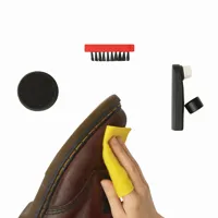 SMALL SHINE cipőpucoló készlet: fanyelű kefével, polírozó kendővel (kb. 23 x 10 cm), színtelen cipőápoló olaj szivaccsal, színtelen szilikon olaj szivaccsal, átlátszó cipzáras tasakban