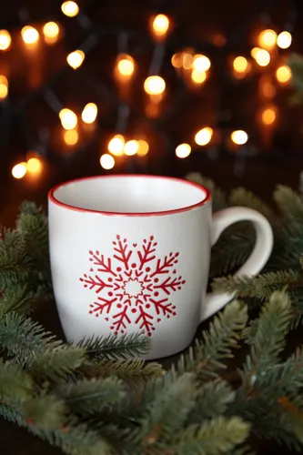 Kerámia bögre karácsonyi mintával és pöttyös felülettel, 320 ml. Kraft papír dobozban szállítjuk.