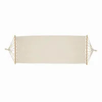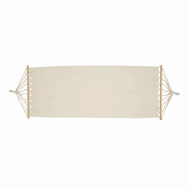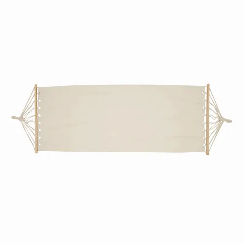 SNOOZY canvas függőágy: a kötélzet fa rudakon fut keresztül, (teherbírás: kb. 120 kg), zsinórfüles pamut táskában