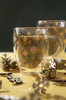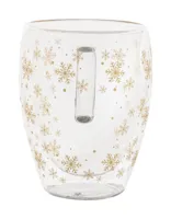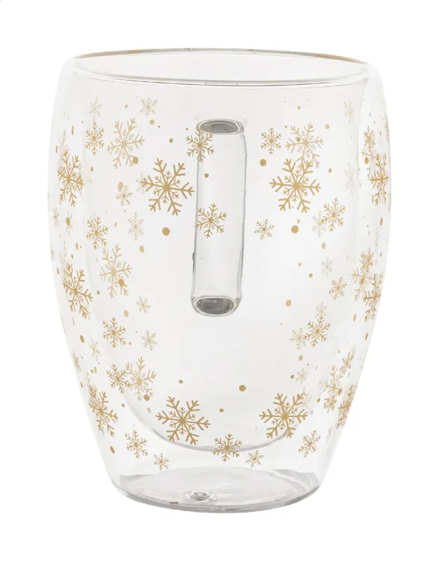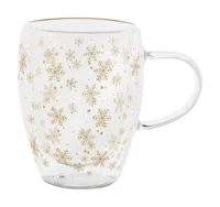 Duplafalú, boroszilikát üvegből készült thermo bögre karácsonyi hópehely mintával, 350 ml. Kraft papír dobozban.