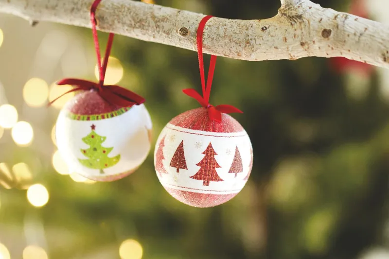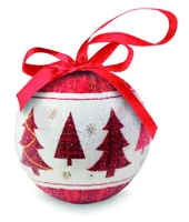 Gyöngyházfényű karácsonyfadísz masnis akasztóval. Hozzáillő karton ajándékdobozban.
