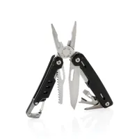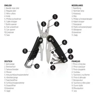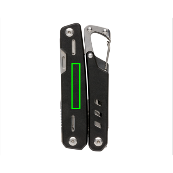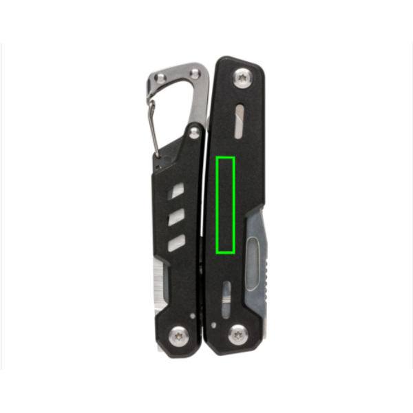 Erős és időtálló szerszám 11 funkcióval. Alumínium borítás, rozsdamentes acélból készült szerszámok. Tartalma: fogó, laposfogó, csípőfogó, kés, csillagfejű csavarhúzó, laposfejű csavarhúzó, fűrész, konzervnyitó, sörnyitó, kábelvágó fogó, karabiner. Ajándékdobozban érkezik.