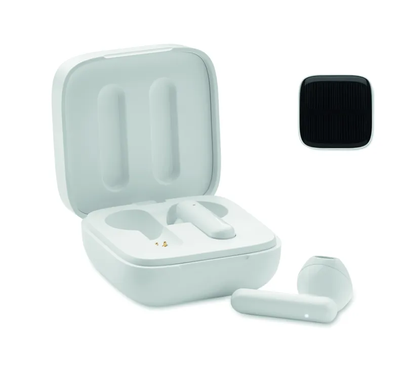TWS (True Wireless Stereo) 5.3 vezeték nélküli fülhallgató mikrofonnal és 30 mAh-s újratölthető akkumulátorral, ABS műanyagból. Üzemidő kb. 4 óra. Kiegészítő napelemes töltéssel. Automatikus párosítás. C típusú töltőkábellel, 200 mAh töltőállomással.