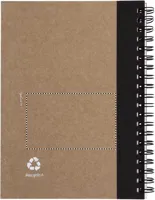 B6 újrahasznosított papírból készült jegyzetfüzet, hozzáillő tollal. Ikerspirálozott. 140 sima oldal (70 lap) újrahasznosított papírból. Illeszkedő színű elasztikus tolltartó hurok. Nyomógombos golyóstoll újrahasznosított karton tolltesttel, színben illeszkedő, biológiailag lebomló műanyag szerelvényekkel. Kéken író betéttel. FSC MIX CREDIT | P7.1 | FSC-C213206