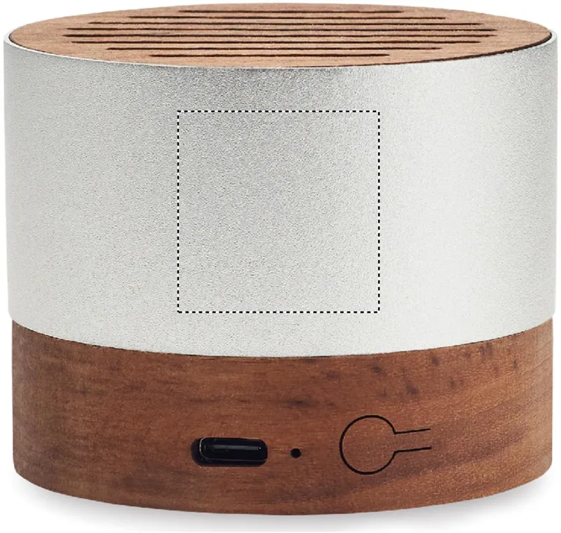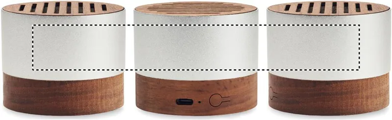 5.3 vezeték nélküli hangszóró újrahasznosított alumínium házban, a tetején és talpán diófa részletekkel. 1 újratölthető 300 mAh lítium-ionos akkumulátort tartalmaz. Teljesítmény: 3W, 3 Ohm és 5V. Üzemidő kb. 3 óra.