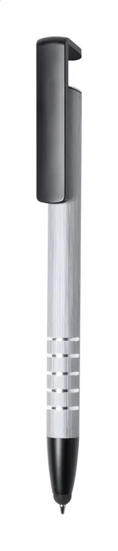 Alumínium golyóstoll érintőképernyős véggel és telefontartó funkcióval. Kék tollbetéttel szállítjuk.