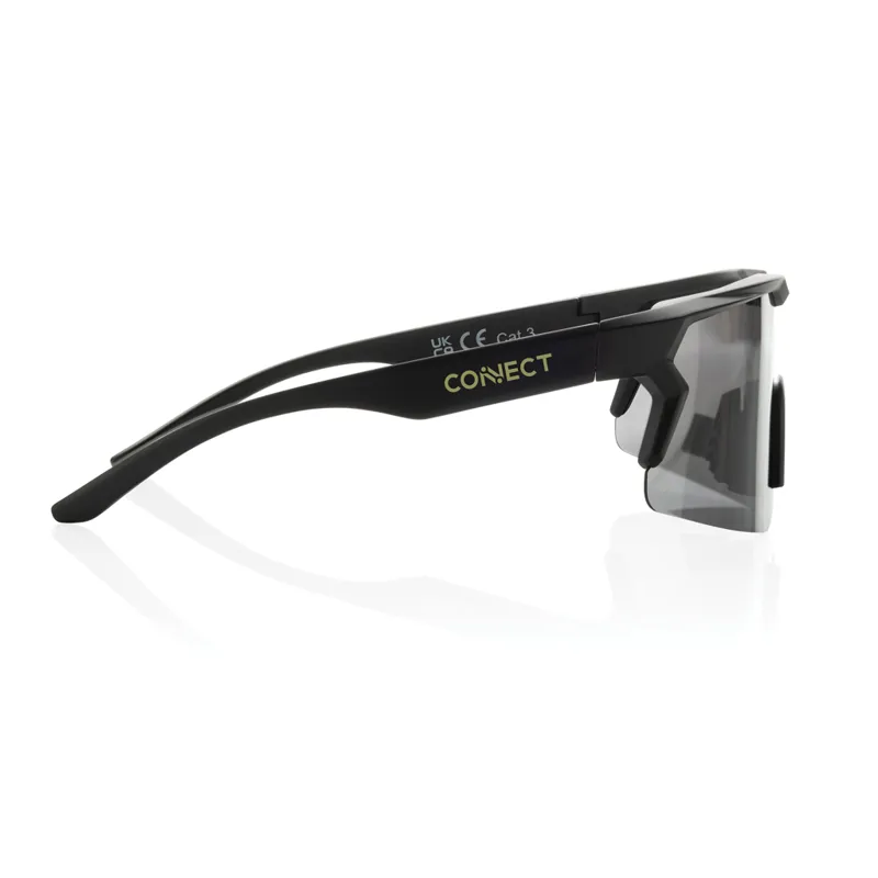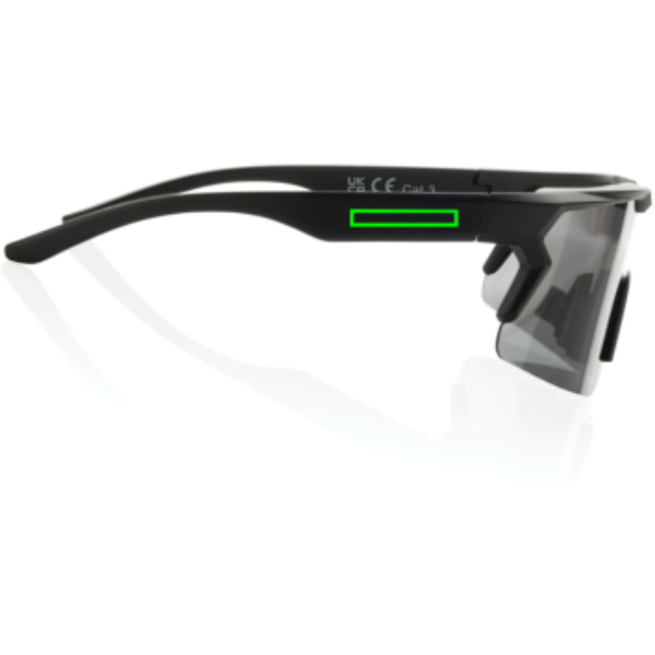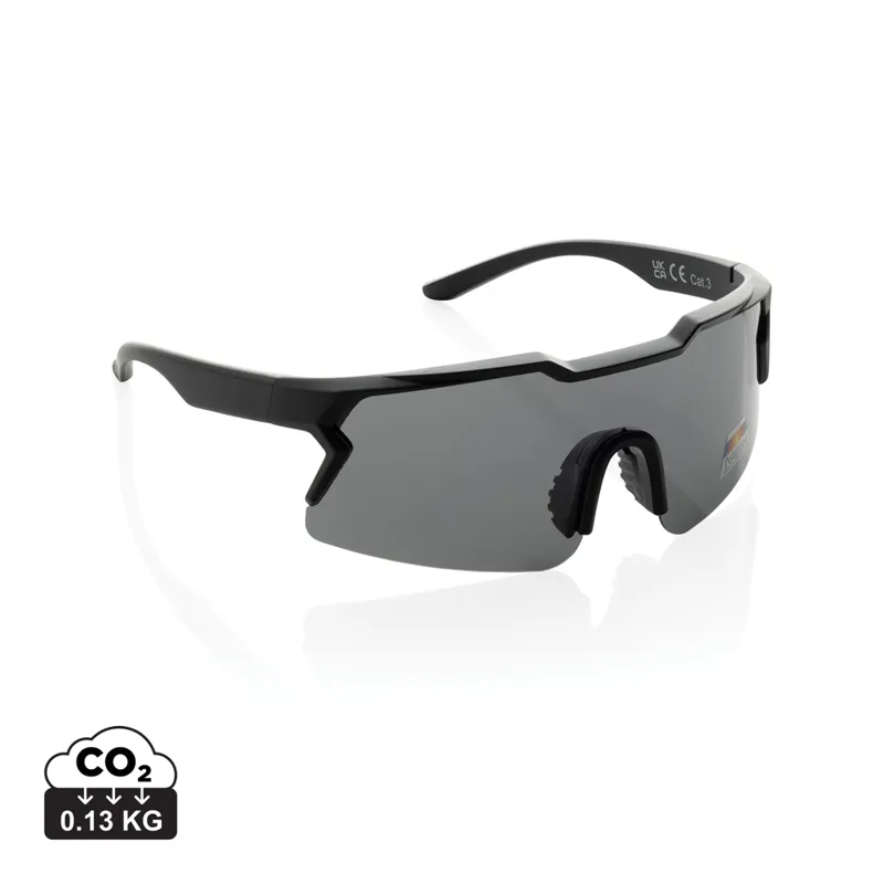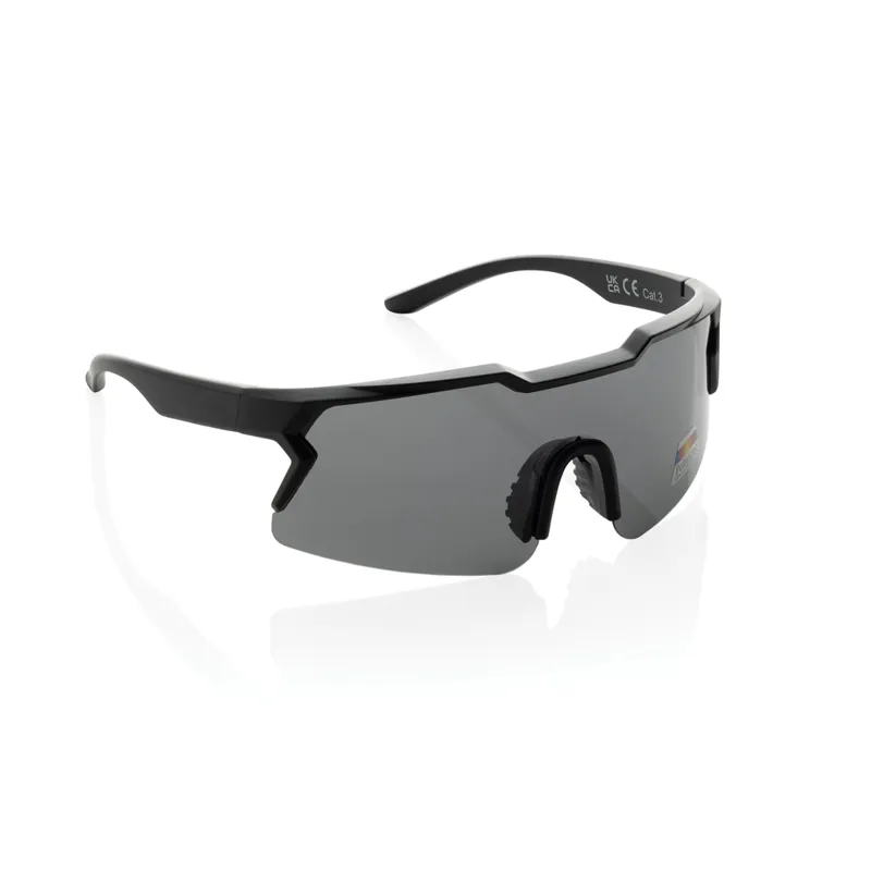 Sportos kialakítású polarizált napszemüveg amely RCS újrahasznosított PC kerettel készült. Teljes újrahasznosított anyagtartalom: 50% a termék összsúlya alapján. Az RCS-tanúsítvány biztosítja az újrahasznosított anyagok ellátási láncát. Újrahasznosított RPET tasakkal a szemüveg tárolására.A lencsék polarizáltak, ami kiszűri a visszaverődő napfényt, így sportoláshoz és szabadtéri tevékenységekhez ideális. Megfelelnek az EN ISO 12312-1, UV 400 és CAT 3 szabványnak. FSC® ajándékcsomagolásban.