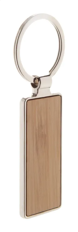 Négyszögletes, fém kulcstartó bambusz betéttel. Kraft papír dobozban szállítjuk.