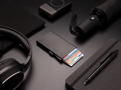 Ez az alumínium kártyatartó a tökéletes megoldás kártyái tárolására és védelmére egyaránt! Legfeljebb 10 sima vagy 6 dombornyomott kártya tárolására. Az oldalán lévő csúsztatható gombbal a kártyák rétegesen tolhatóak ki.