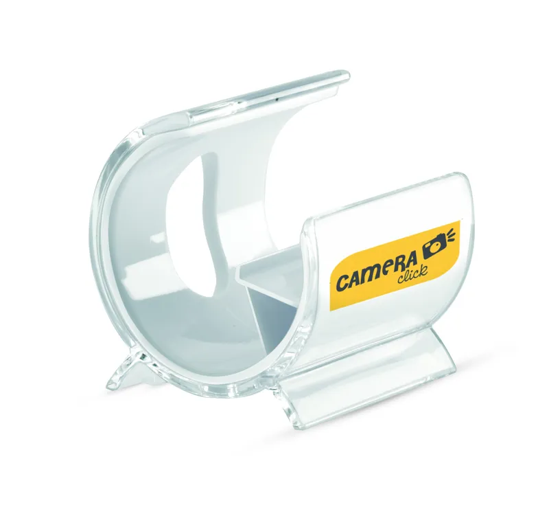 Műanyag mobiltelefon tartó állvány átlátszó műanyag borítással.