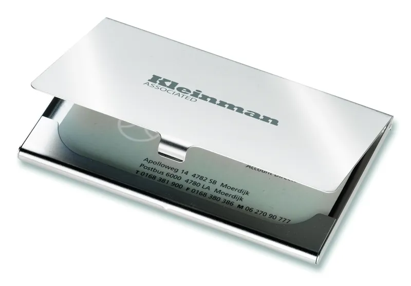 Matt krómszínű névjegykártya tartó.