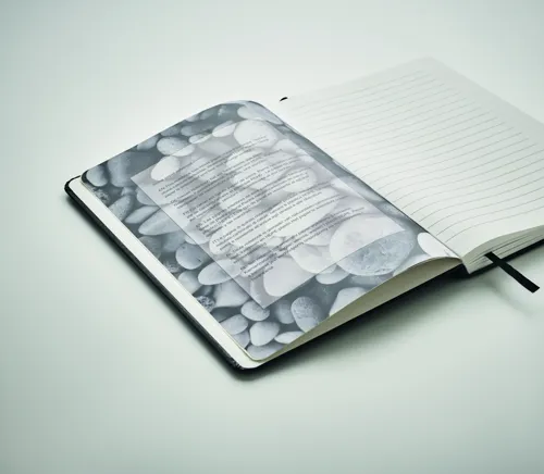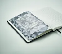 A5 jegyzetfüzet kemény, újrahasznosított kartonborítóval. Cérnafűzött. 160 vonalas (80 lap) minerál papír. Elasztikus zárópánt és könyvjelző szalag. FSC®-certified | FSC MIX CREDIT, P7.1 , FSC-C213206