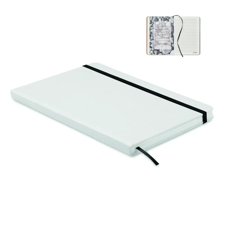 A5 jegyzetfüzet kemény, újrahasznosított kartonborítóval. Cérnafűzött. 160 vonalas (80 lap) minerál papír. Elasztikus zárópánt és könyvjelző szalag. FSC®-certified | FSC MIX CREDIT, P7.1 , FSC-C213206
