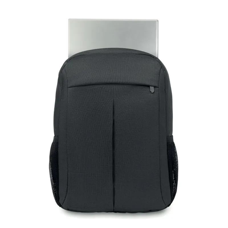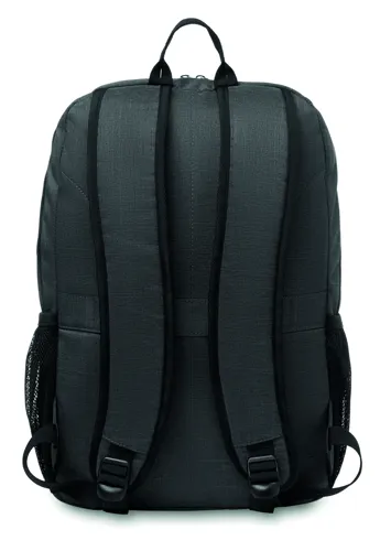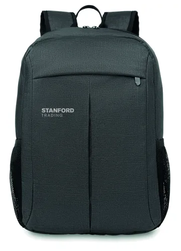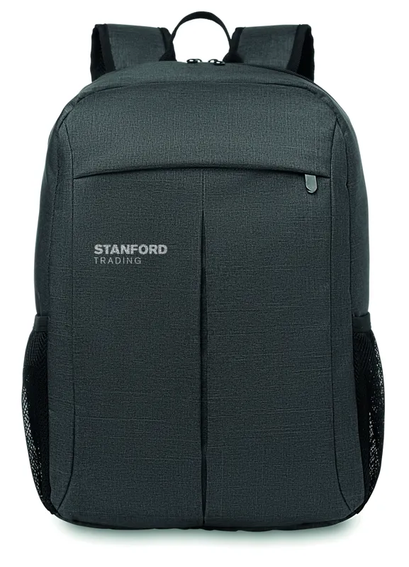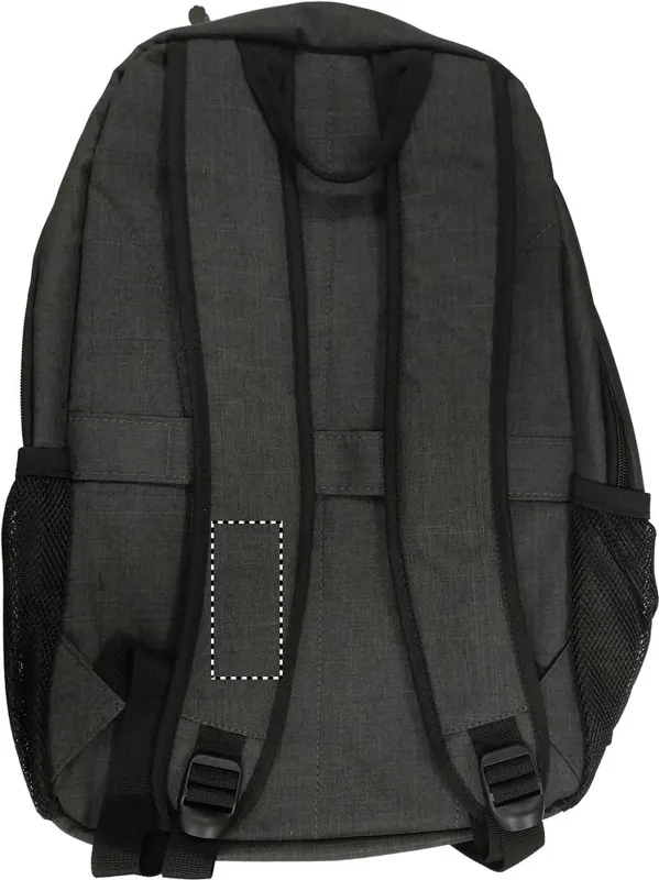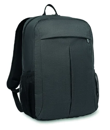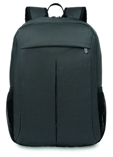 Melírozott színű 360D poliészter laptop hátizsák. Egy fő rekesszel egy 15 colos laptop számára. Cipzározható elülső zseb. Párnázott hátrész és vállpántok. A hátulján pánttal, mellyel bőröndhöz csatlakoztatható.