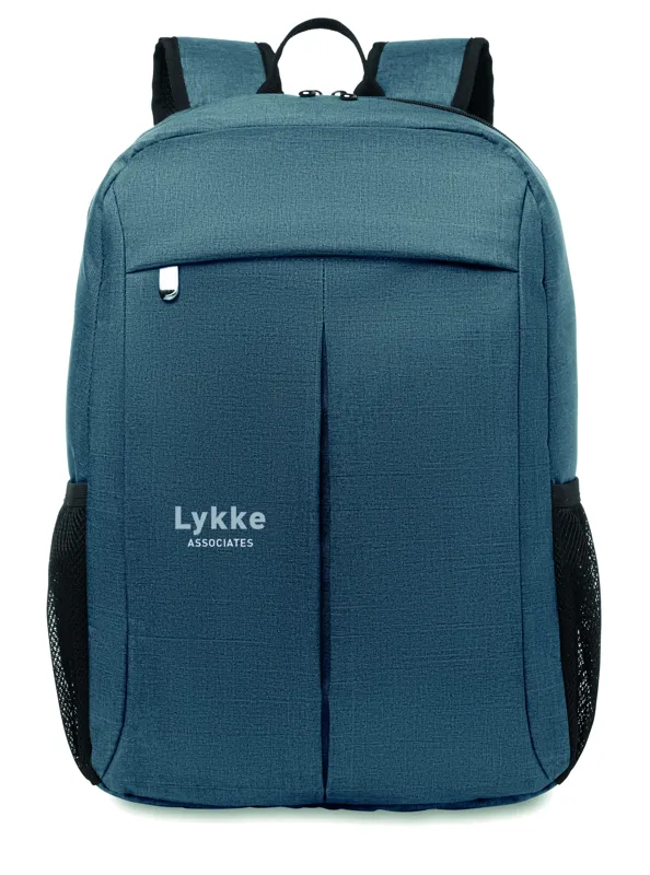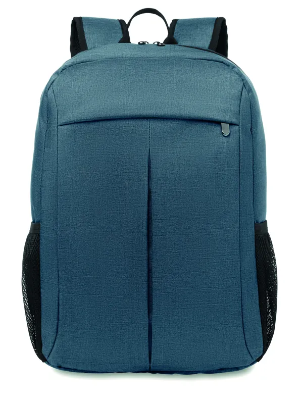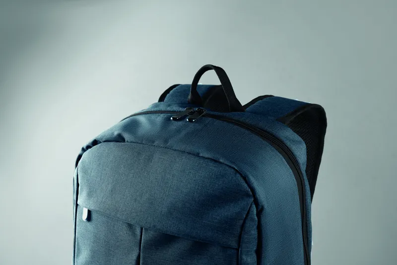 Melírozott színű 360D poliészter laptop hátizsák. Egy fő rekesszel egy 15 colos laptop számára. Cipzározható elülső zseb. Párnázott hátrész és vállpántok. A hátulján pánttal, mellyel bőröndhöz csatlakoztatható.