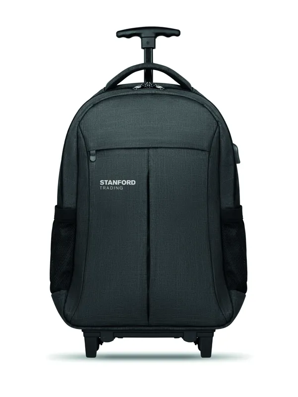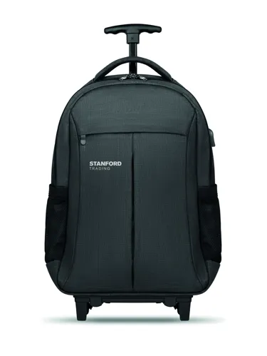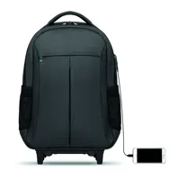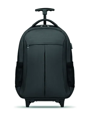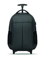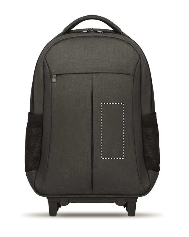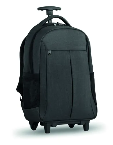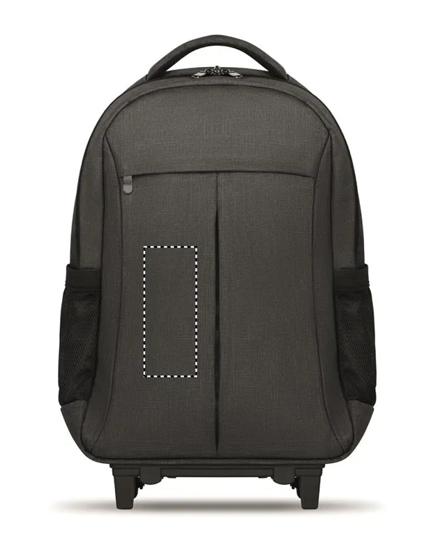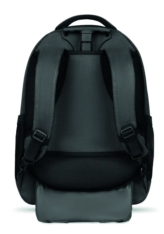 Melírozott színű 360D poliészter kerekes hátitáska. 15 colos belső laptoptartó rekesszel. Elülső cipzározható zseb. Bélelt hátrész és vállpántok. Táblagép tartó.