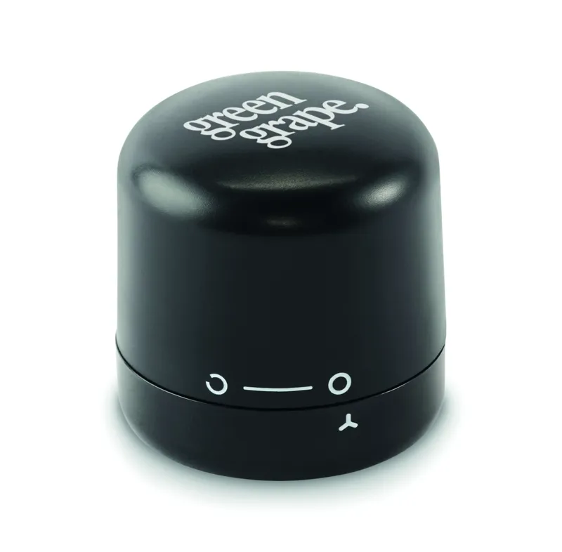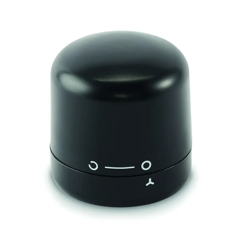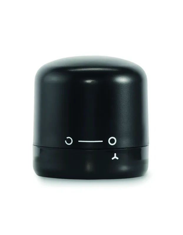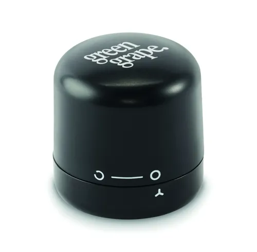 Újrahasznosított ABS anyagból készült pezsgőzáró forgózáras mechanizmussal és szivárgásmentes kialakítással.