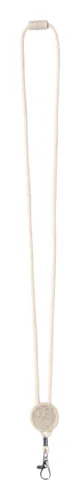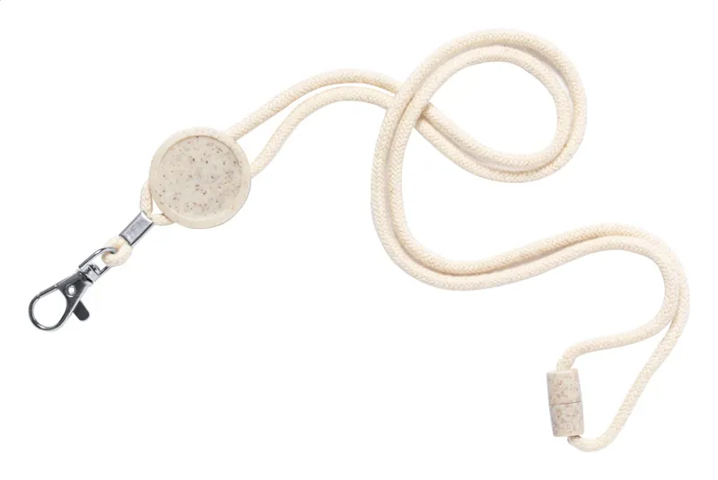 Pamut nyakpánt fém karabinerrel, biztonsági csattal és búzaszalma műanyagból készült, epoxy matricához ideális kör alakú résszel.