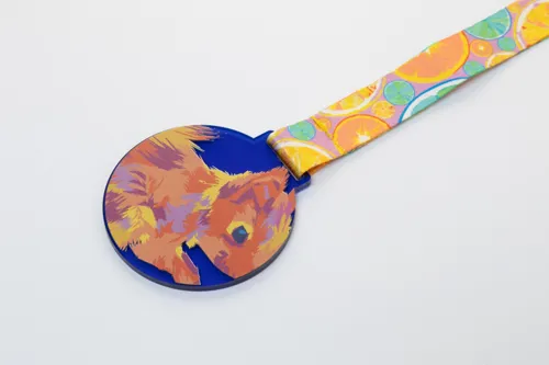 Egyediesíthető akril érem full colour grafikával. Szublimációs technikával emblémázott RPET nyakpánttal. Az ár tartalmazza a szublimációs és UV LED emblémázást. Minimális rendelési mennyiség: 100 db.