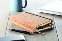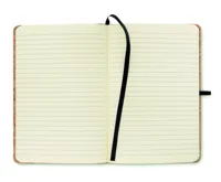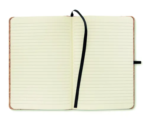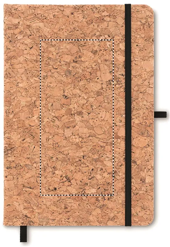 A5 jegyzetfüzet parafa keményfedeles borítóval. Cérnafűzött. 192 vonalas oldal (96 lap) újrahasznosított papírból. Elasztikus zárópánt és tolltartó hurok, könyvjelző szalag. A parafa 100%-ban természetes anyag. Szerkezeti jellege és felületi porozitása miatt az egyes tárgyak végső emblémázási eredménye eltéréseket mutathat.