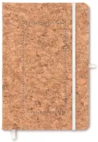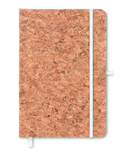 A5 jegyzetfüzet parafa keményfedeles borítóval. Cérnafűzött. 192 vonalas oldal (96 lap) újrahasznosított papírból. Elasztikus zárópánt és tolltartó hurok, könyvjelző szalag. A parafa 100%-ban természetes anyag. Szerkezeti jellege és felületi porozitása miatt az egyes tárgyak végső emblémázási eredménye eltéréseket mutathat.