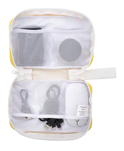 Egyedi gyártású, cipzáras RPET kábelrendező tok hálós belső rekeszekkel. Teljes felületén szublimációs nyomtatott grafikával. 600D RPET poliészterből, megkülönböztető RPET címkével. Minimális rendelési mennyiség: 25 db.