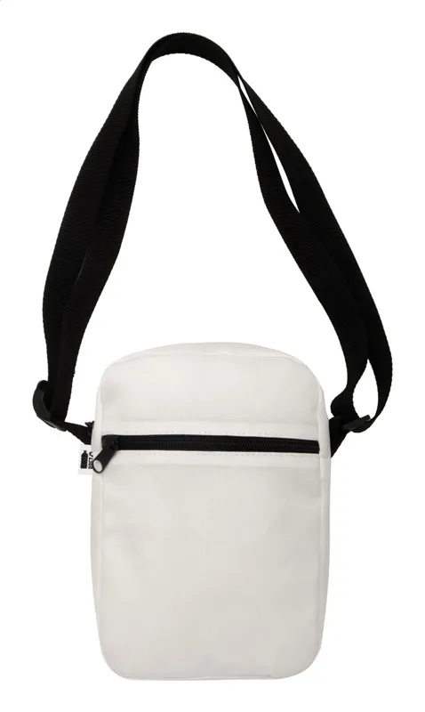 Egyedi gyártású függőleges oldaltáska 600D RPET poliészterből, cipzáras rekesszel, elülső zsebbel. Teljes felületén szublimációs eljárással emblémázva, megkülönböztető RPET címkével. Minimális rendelési mennyiség: 25 db.
